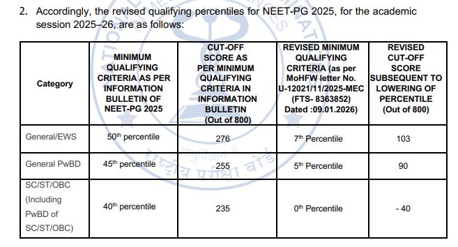 नेशनल बोर्ड ऑफ एग्जामिनेशंस इन मेडिकल साइंसेज यानी NBEMS ने NEET PG 2025 के लिए क्वालिफाइंग परसेंटाइल कम कर दिया…