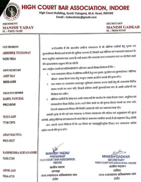 इंदौर हाईकोर्ट बार एसोसिएशन की मीडिया के लिए पहल….