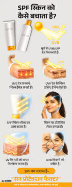 जवाब- SPF एक प्रोटेक्टिव शील्ड की तरह काम करता है, जो स्किन पर लेयर बनाकर हानिकारक UV किरणों के असर को कम करता है।